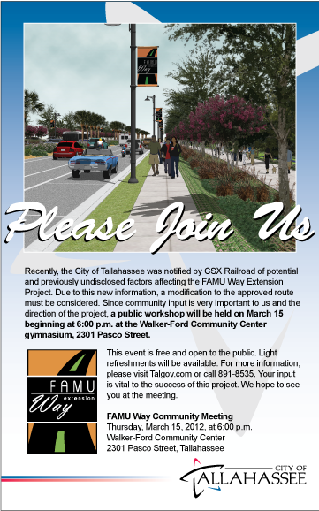 A community meeting was held to discuss with residents the idea of extending FAMU Way to create a new east-west corridor to improve traffic flow.