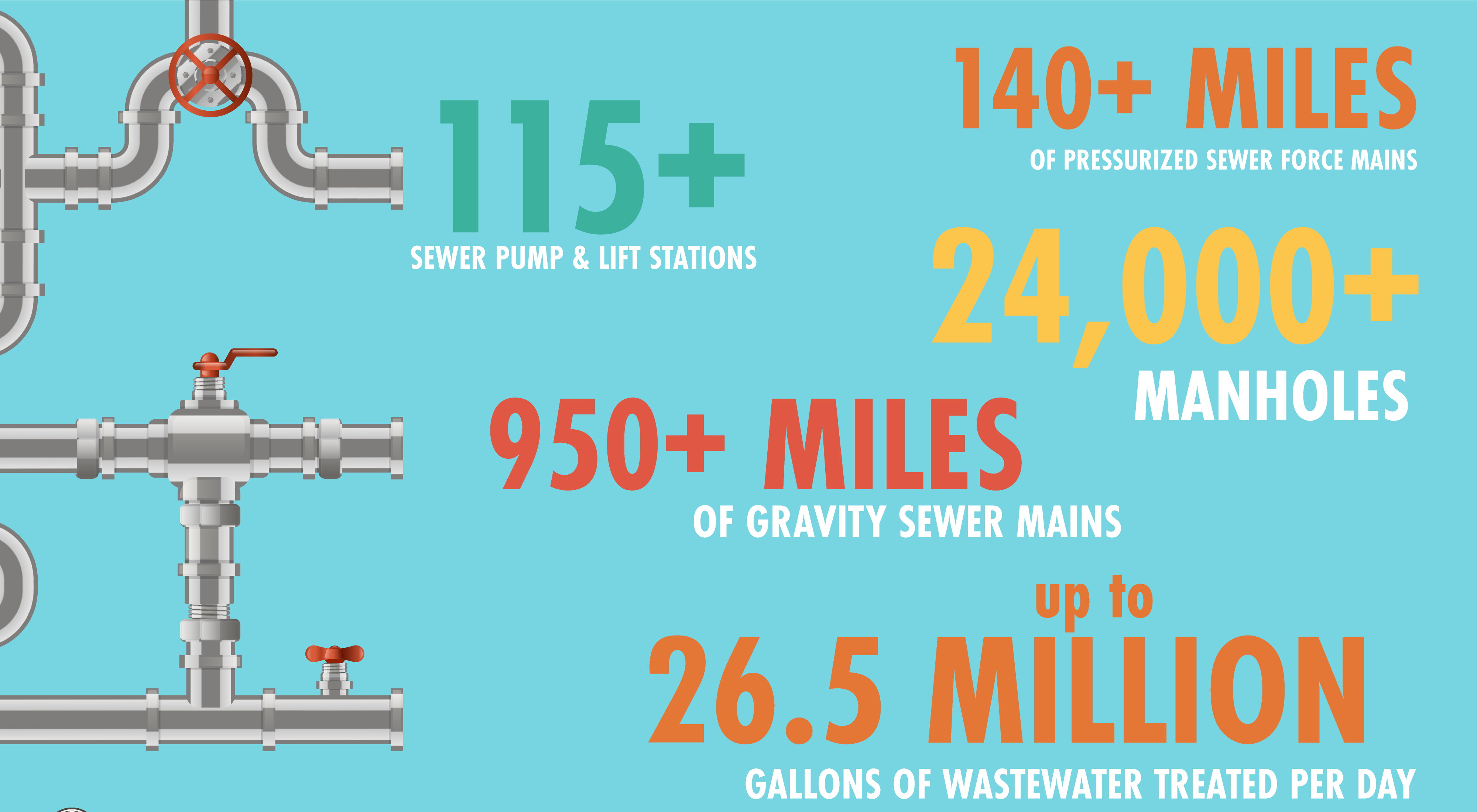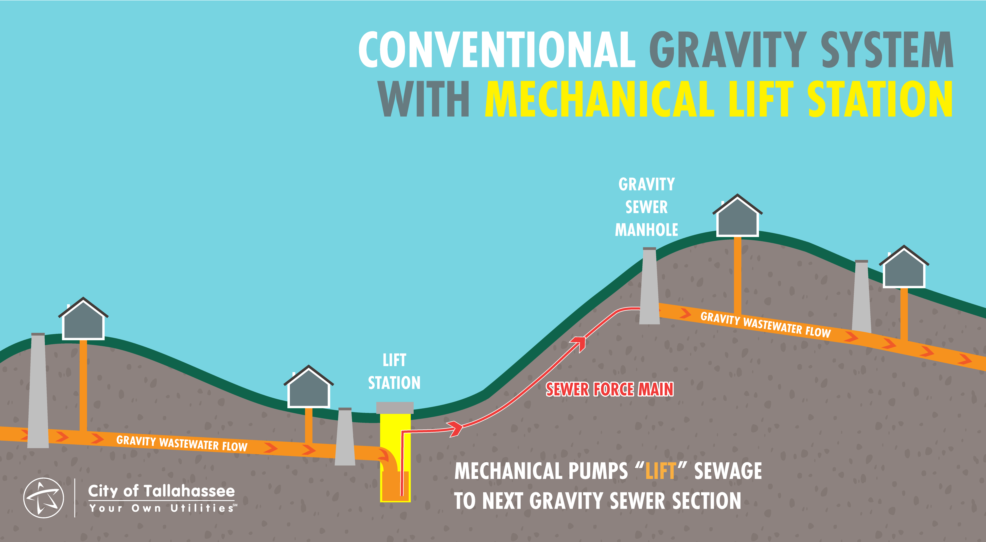 Serving more than 200,000 residents, Tallahassee’s sewer system includes over 1,000 miles of wastewater pipes made up of approximately 140 miles of pressurized force mains and 950 miles of gravity mains. This complex network of pipes systematically transports the community's wastewater to the City’s state-of-the-art facility, where up to 26.5 million gallons of sanitary sewer are treated per day.